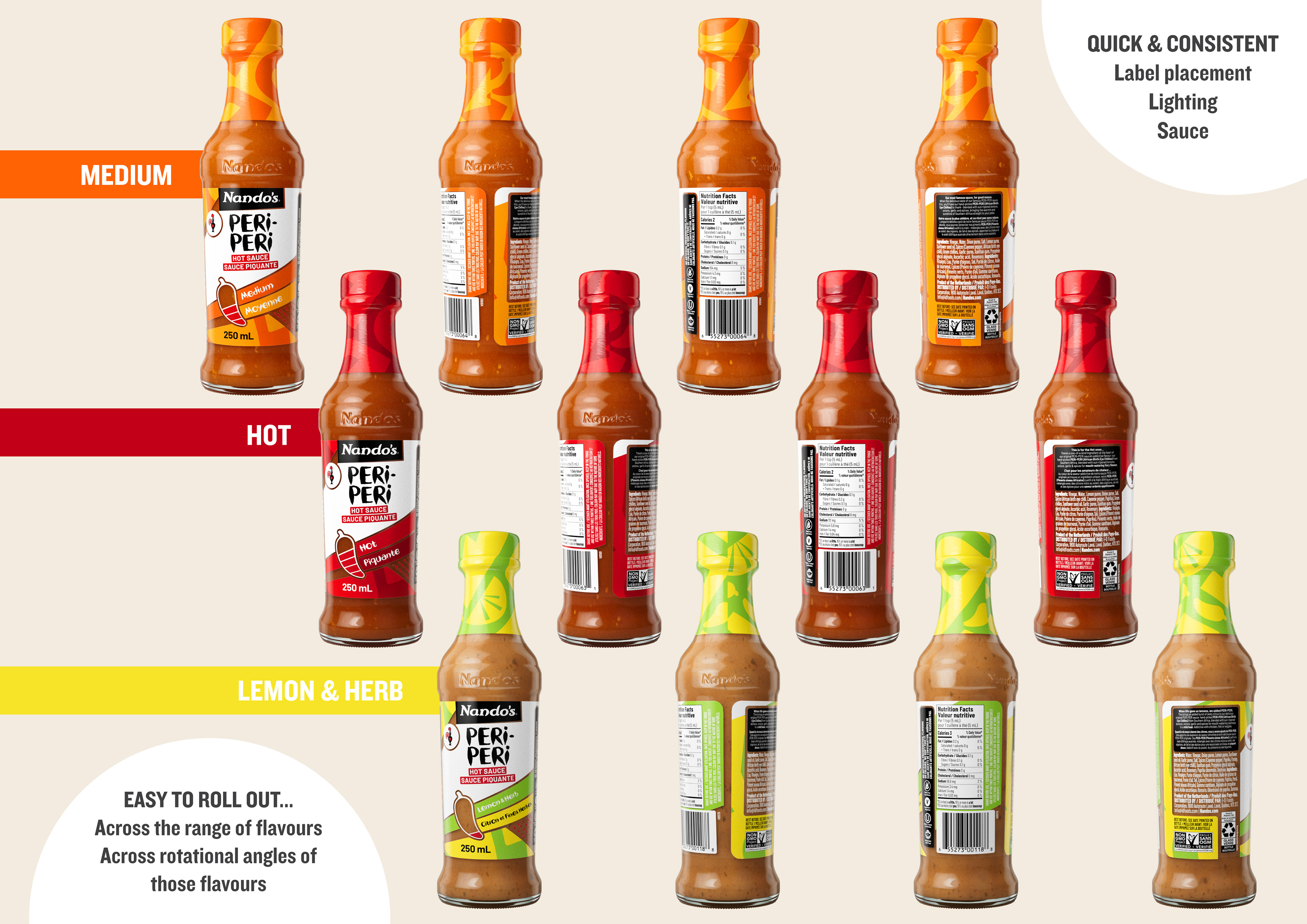 The deck demonstrated how a single, accurately modelled 3D bottle could be adapted across flavours, markets, angles, and lighting conditions — eliminating inconsistent retouching and reducing production time when labels or products are updated..